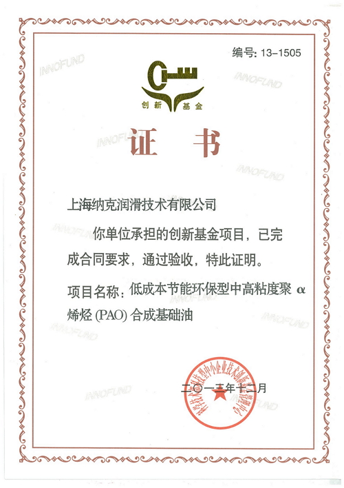 2010年納克潤滑獲得浦東新區(qū)科技型中小企業(yè)技術創(chuàng)新資金項目支持。