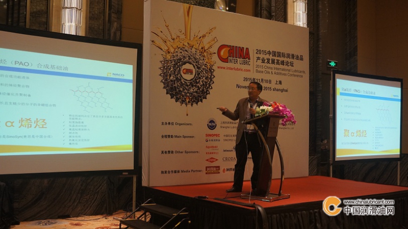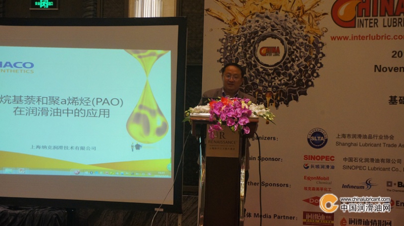 在會(huì)上,上海納克潤滑技術(shù)有限公司技術(shù)總監(jiān)劉中文先生發(fā)表了主題演講,題目為“烷基萘和聚a烯烴(PAO)在潤滑油中的應(yīng)用”。劉總為大家介紹了納克潤滑的研發(fā)中心和去年投產(chǎn)的PAO工廠,并結(jié)合納克產(chǎn)品的特點(diǎn),全面闡述了聚a烯烴(PAO)和烷基萘(AN)的優(yōu)異性能。